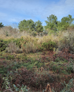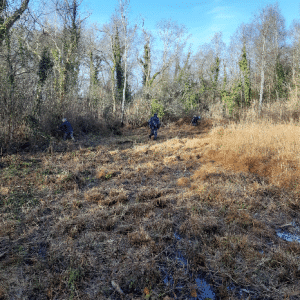 Le 16 janvier, bénévoles et partenaires se sont mobilisés sur la réserve des Landes de Bilais pour rouvrir des secteurs de landes en cours de reboisement, dans le cadre d’un projet de restauration co-financé par la Fondation du patrimoine et la DREAL Pays de la Loire.